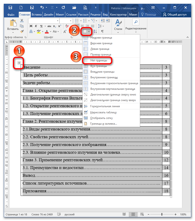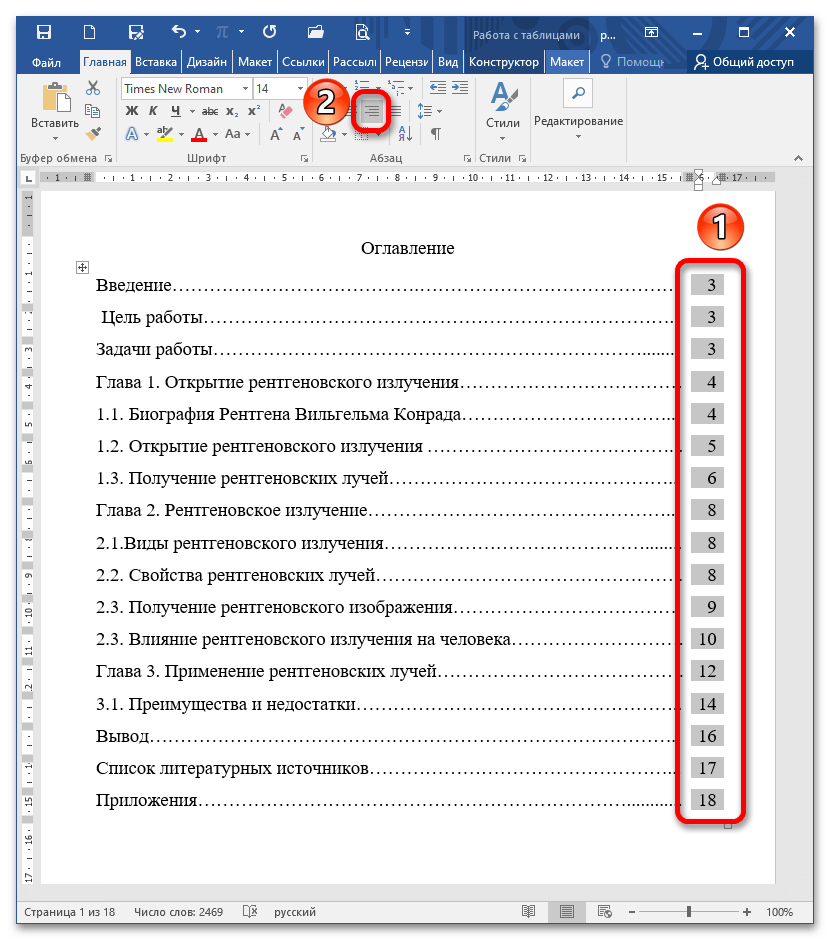 Чтобы выровнять номера страниц по правому краю, вставьте на место содержания таблицу с невидимыми границами.