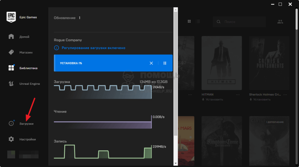 Стартует скачивание игры, за которым можно следить в пункте “Загрузки”.