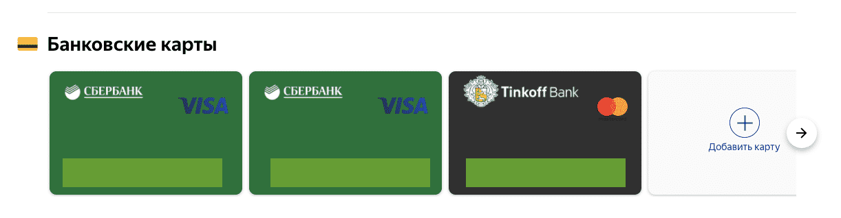 Если вы будете оплачивать какие-либо услуги Яндекса, то в разделе Банковские карты будут храниться данные обо всех введенных вами картах.