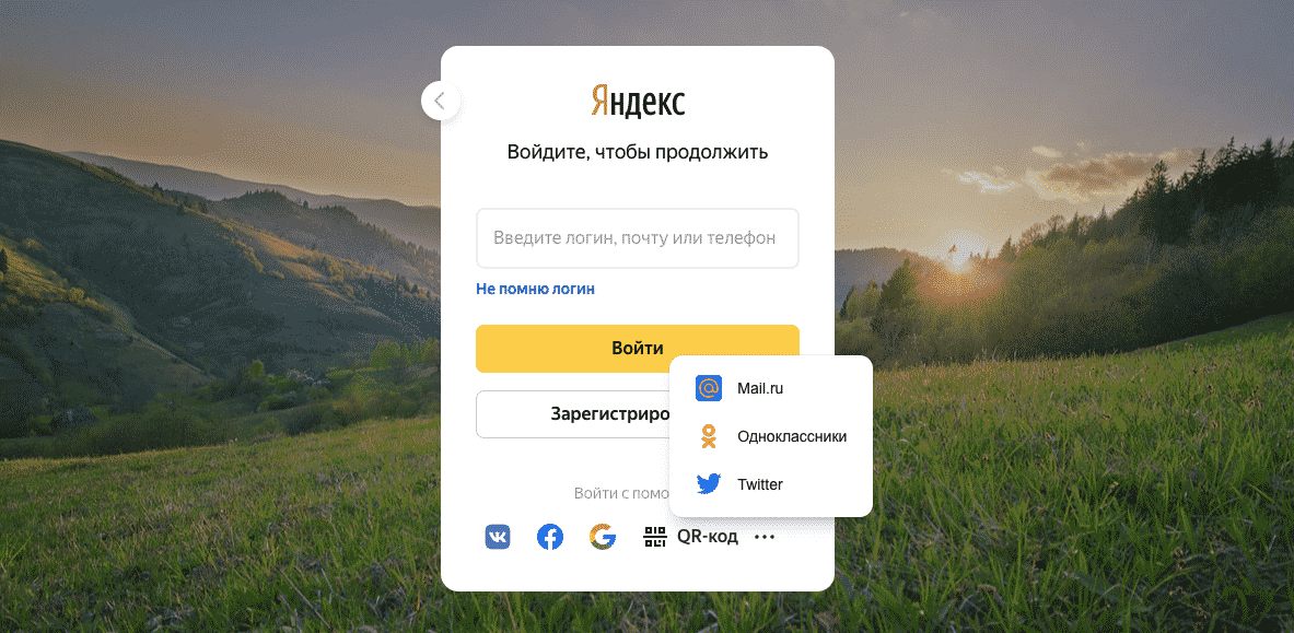 Если ваш ящик привязан к странице в социальной сети, нажмите на ее иконку внизу.