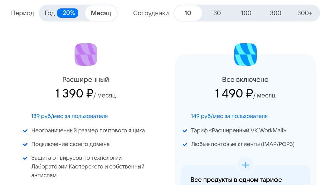 Но никто не может дать гарантий, что почта от Mail или, как она сейчас называется, VK WorkSpace будет бесплатной всегда. Gmail или почта для домена от Google стала платной одной из первых. Затем её примеру последовал Yandex. Полагаем, что это лишь вопрос времени, когда за удобство придётся платить.