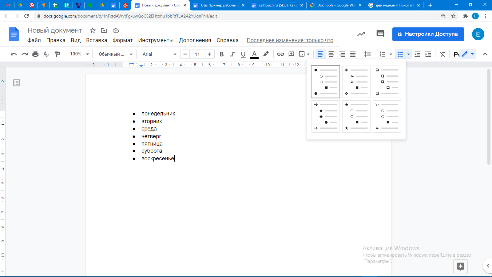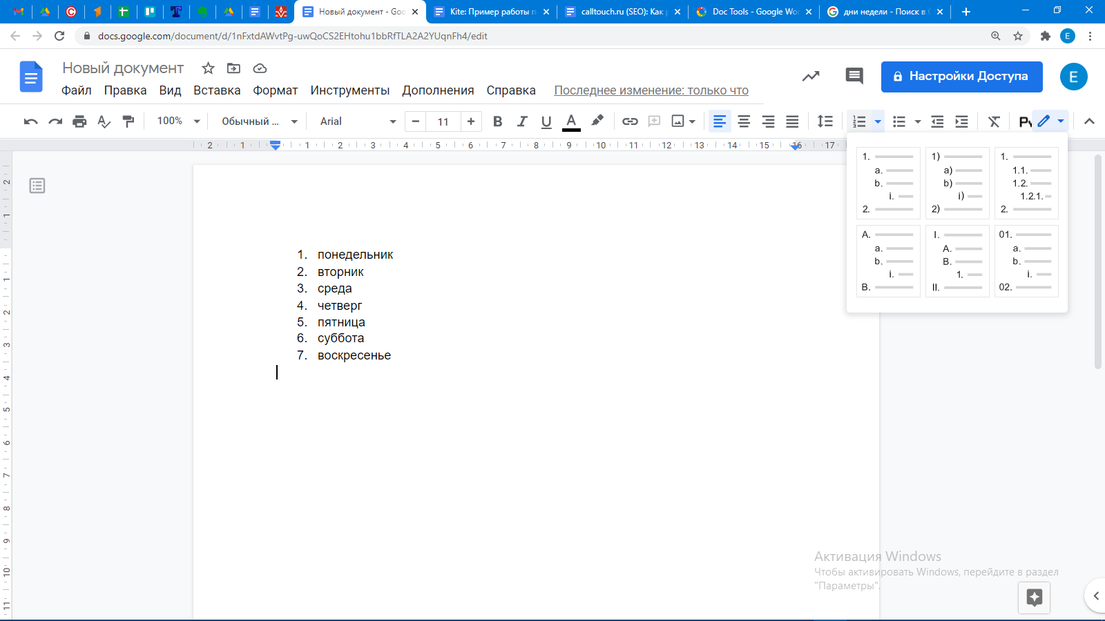 Создать нужный список можно маркированным или нумерованным. Их можно переключать между собой, что значительно облегчает редактирование.