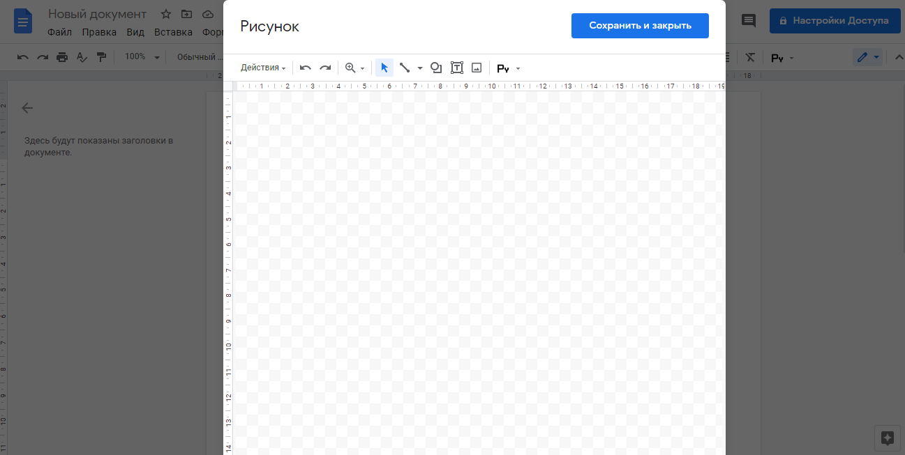 Рисунки — это инструмент для формирования наглядных схем, карт, добавления надписей и других элементов к изображениям. Работа с рисунками происходит в небольшом редакторе, встроенном в Гугл Документы. Для создания нового объекта необходимо перейти в раздел «Вставка» и выбрать «Рисунок».
