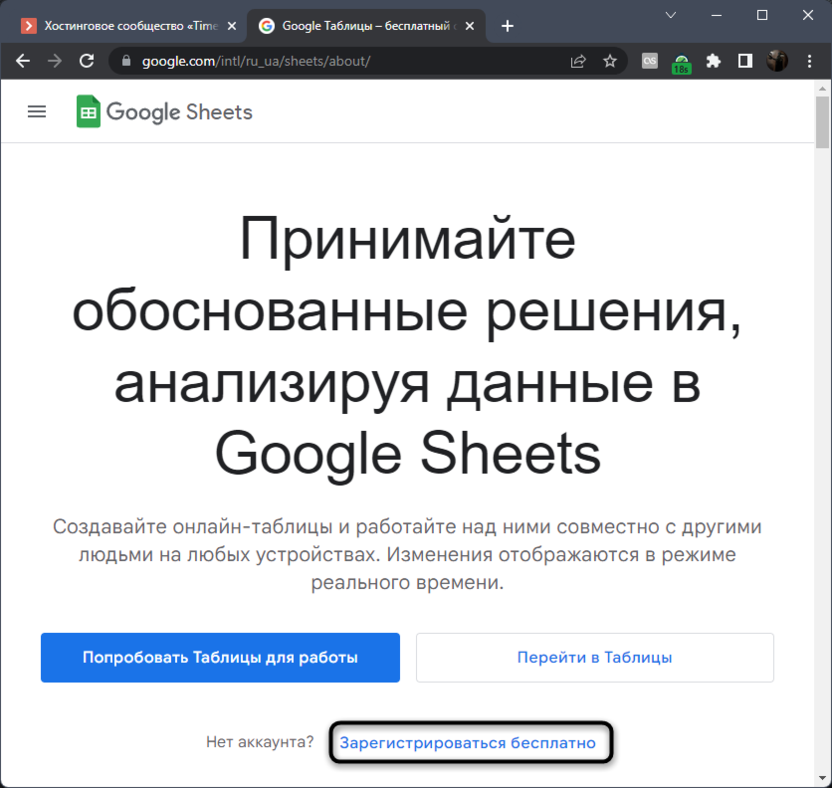 Если у вас еще нет своего профиля в Гугл, разработчики предложат создать его, поскольку без этого не получится работать со всеми инструментами и сохранять изменения в облаке. Для этого нажмите на специально отведенную на странице кнопку и следуйте инструкциям от разработчиков.
