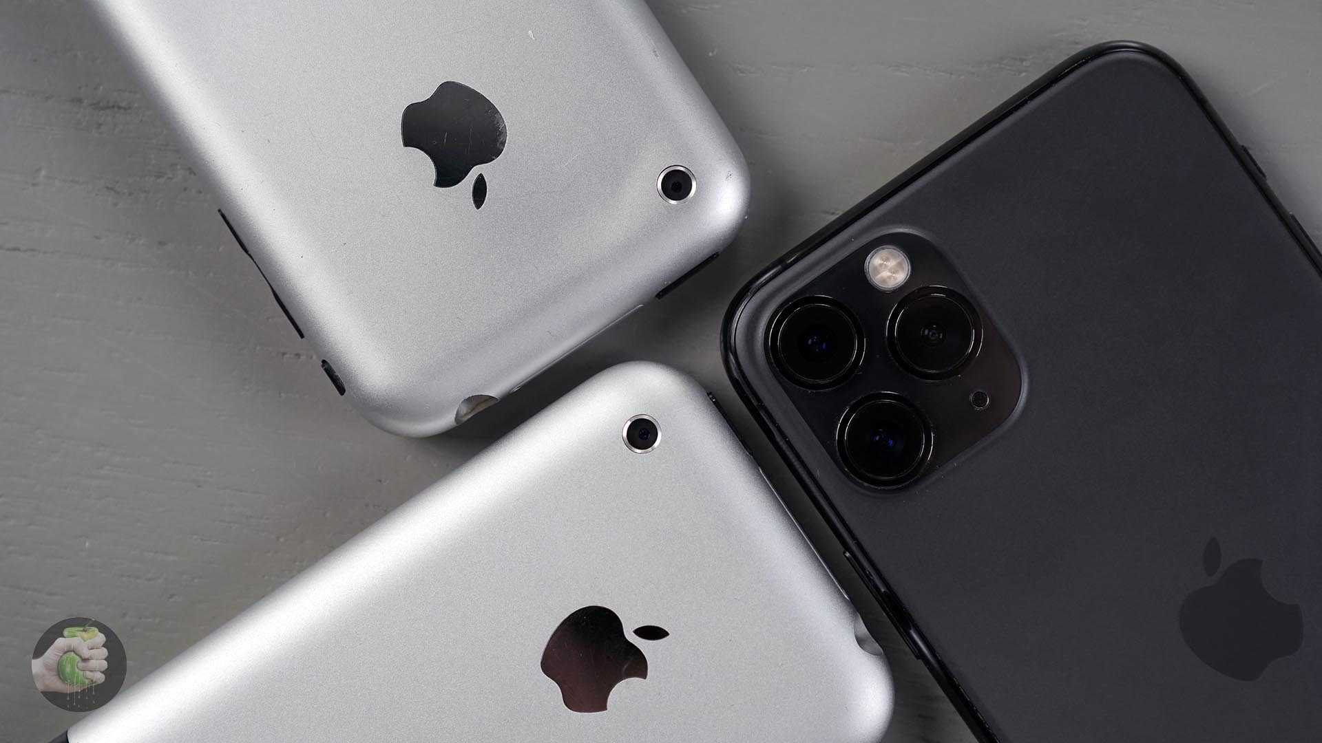 Два самых первых айфона и самый «маленький» iPhone 11 Pro. Фото: Илья Кичаев / Wylsacom Media