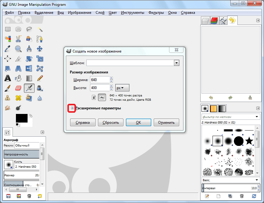 Но, на них внимание мы заострять не будем, так как целью является показать алгоритм создания изображения с прозрачным фоном. Жмем на «плюсик» около надписи «Расширенные параметры», и перед нами открывается дополнительный список