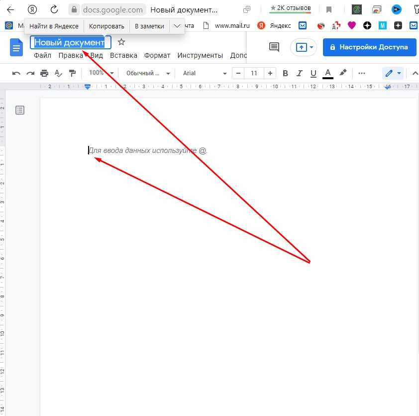Для начала вам необходимо создать аккаунт Гугл, автоматически вы получите доступ к Гугл Диску, на котором и расположены Google Docs. Открыть новый документ можно несколькими способами: