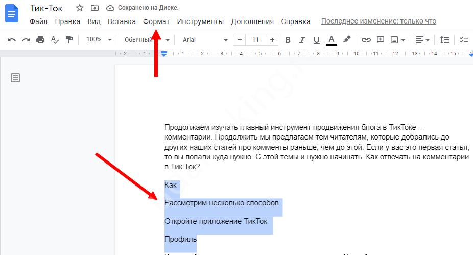 - на верхней панели ищем кнопку «Формат», нажимаем;