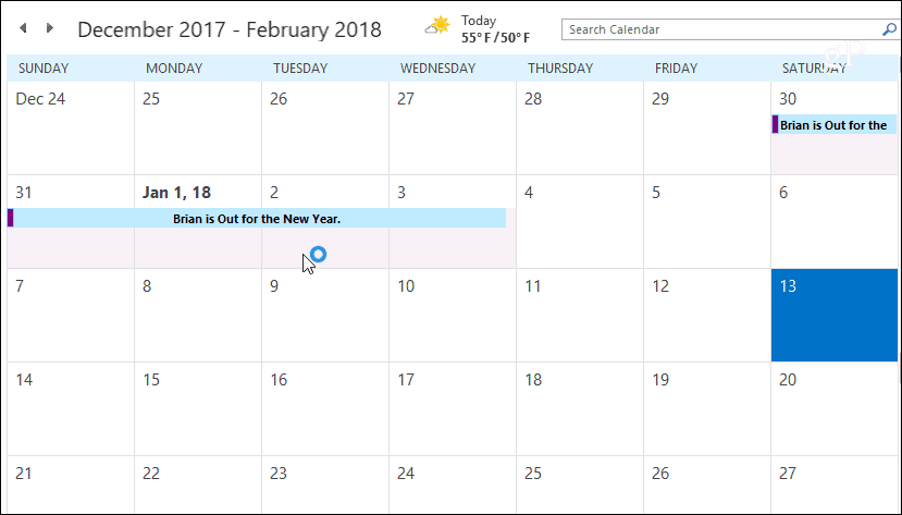 Запустите Outlook из пакета Office и выберите календарь. Затем дважды щелкните первый день, когда вы планируете выйти из офиса.