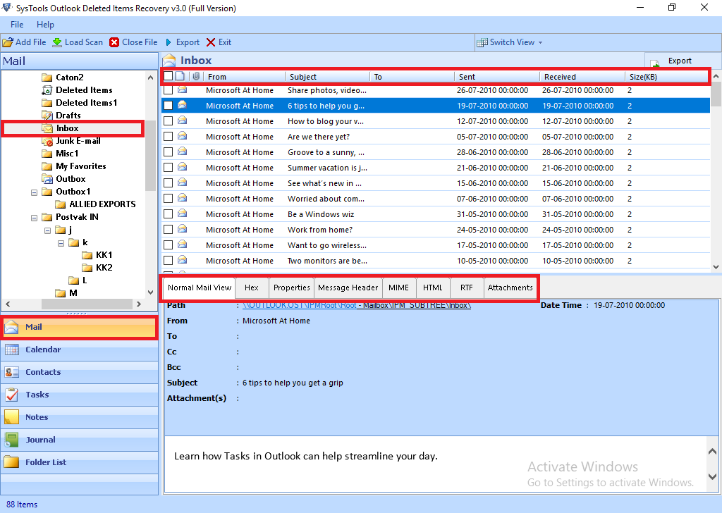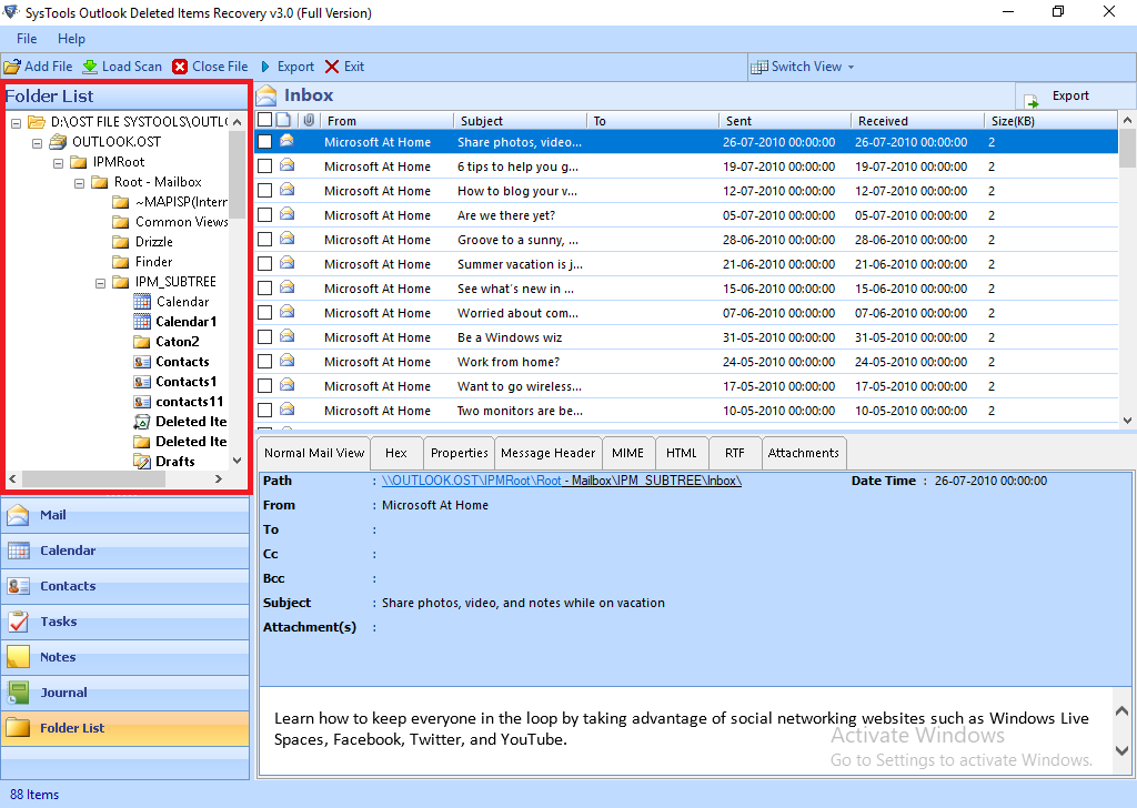 4: — Теперь вы можете видеть все свои папки и элементы почтового ящика. В левой части окна есть вкладки для Почта, календарь, контакты, заметки, журнал и список папок, которые отображают отдельные элементы файла OST.