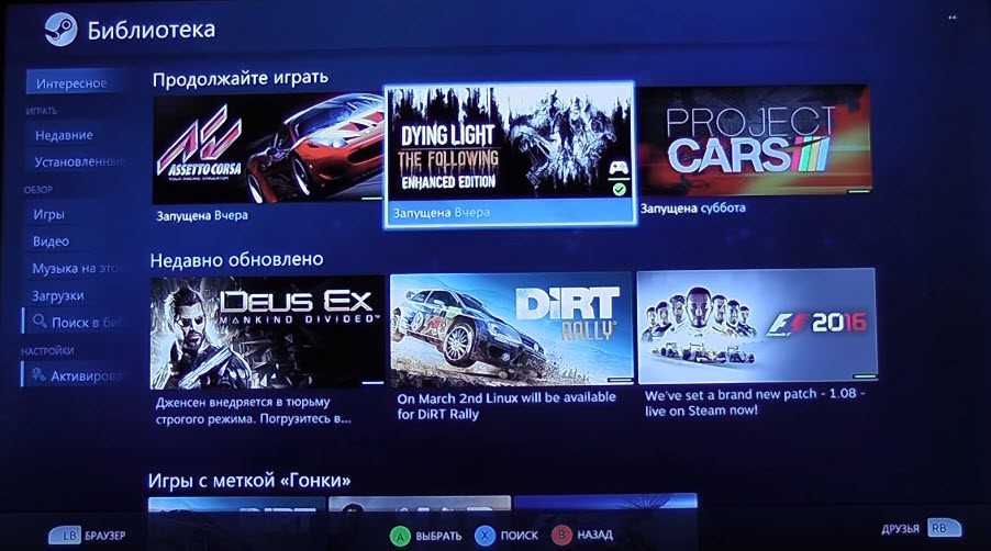 Повторное нажатие на кнопку с логотипом открывает окно Steam. Третье — запускает режим Big Picture: вот оно, родное место обитания геймпада. Большинство игр определяют его как Xbox-контроллер, и работает он в них совершенно стандартно.