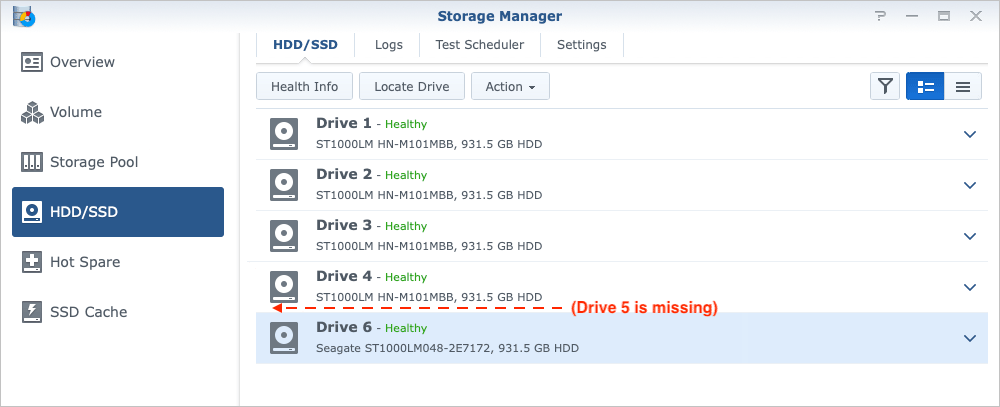 You will notice that Drive 5 is now missing from the HDD/SDD page.