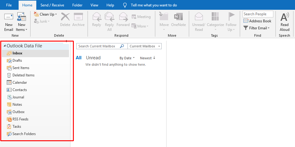 - Нажмите «Перейти»-«Список папок» в главном меню или нажмите Ctrl + 6 и выберите папку, которую вы только что создали. (Список папок позволяет просматривать все папки Outlook в виде простого списка).