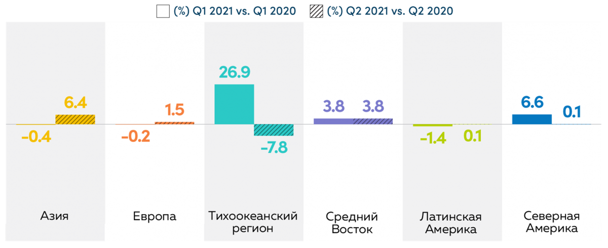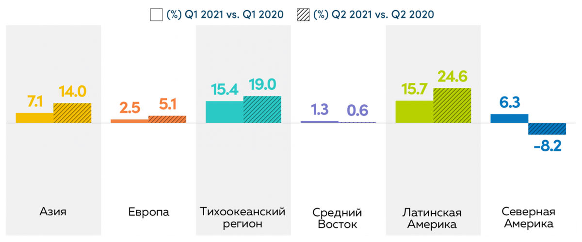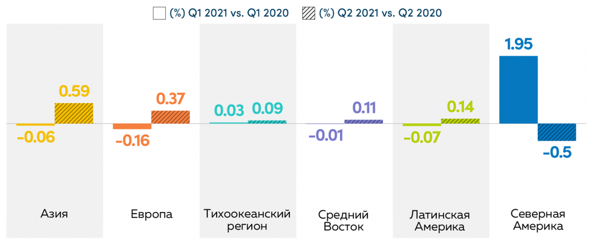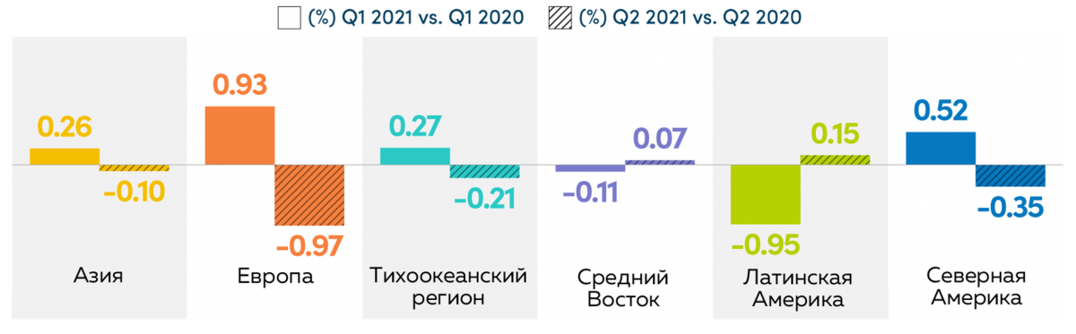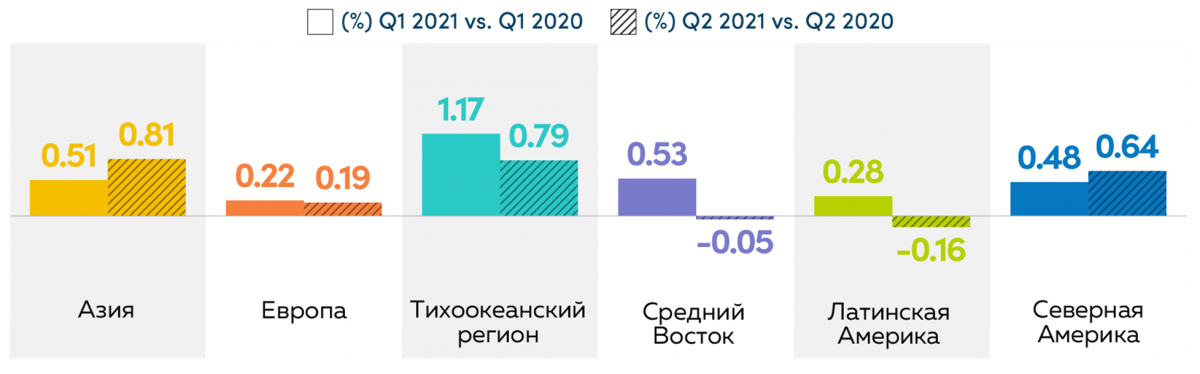 Увеличение битрейта означает, что видео транслировалось в более высоком качестве, и это коснулось практические всех регионов, за исключением Тихоокеанского.