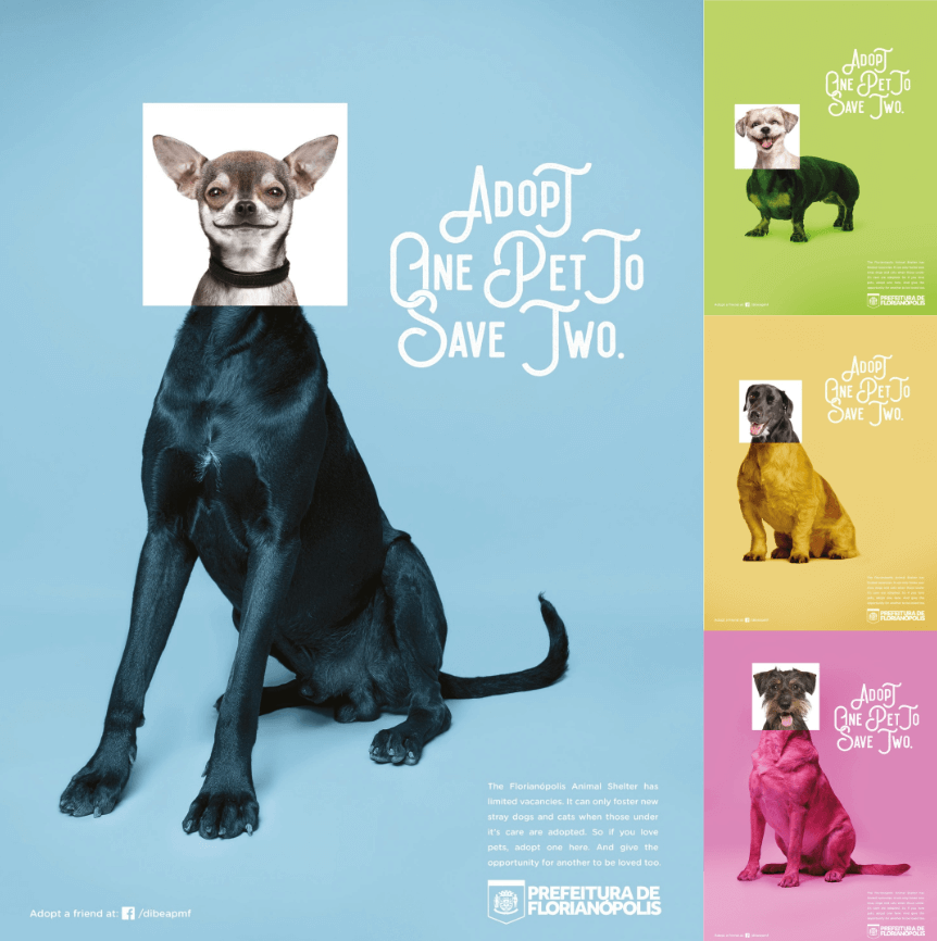 Бразильский приют для животных придумал симпатичный креатив, призывающий взять собаку из приюта, чтобы освободить место для другого брошенного животного. Возьми одного – спаси двух!