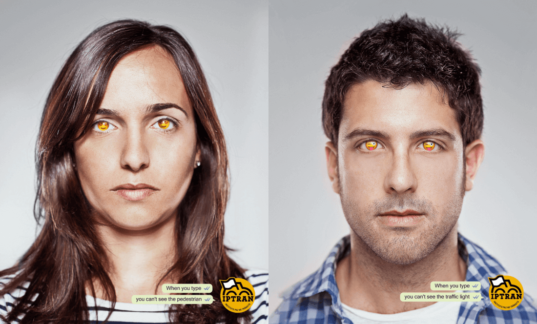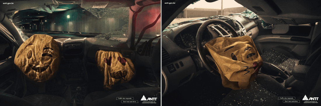 Еще один пример из Бразилии – социальная реклама «эмодзи в глазах», рассказывающая о том, что случается, когда водитель смотрит на экран телефона, а не на дорогу.