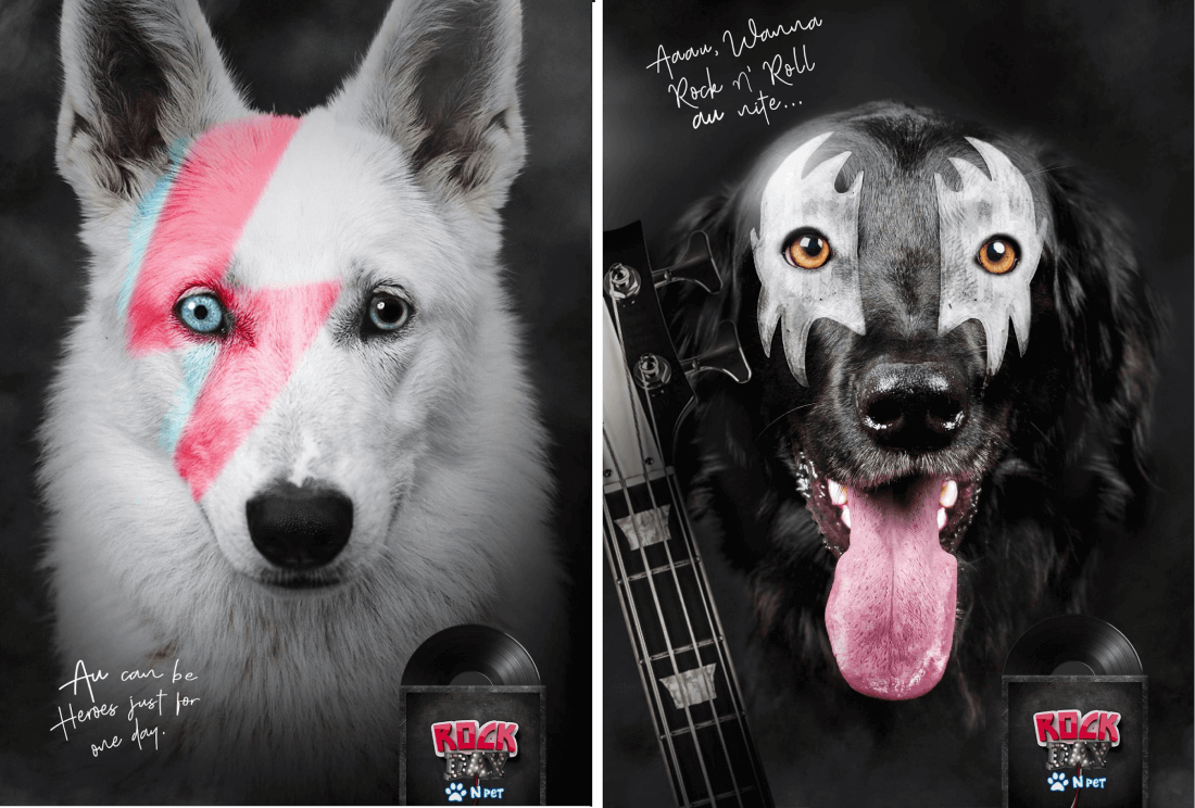 В Бразилии, похоже, уделяют много внимания животным. Еще одна ветеринарная клиника N Vet использовала изображения питомцев в рекламной кампании, где они выступают в роли рок-звезд.
