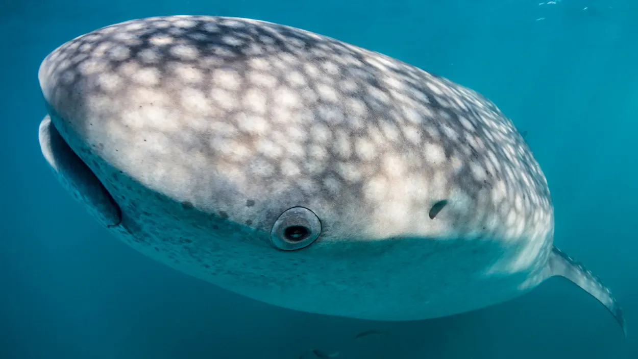 Китовые акулы – самые большие из ныне живущих акул, их глаза окружены крошечными зубцами. (Изображение предоставлено: Брент Дюран / Getty Images)