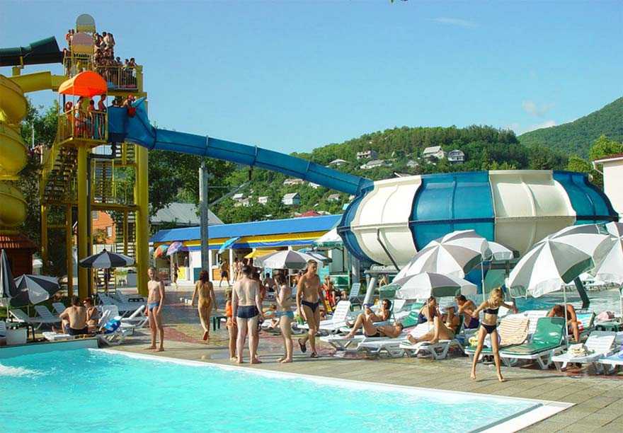 9 горок, бассейны, есть водопад, душ «Гриб», детский бассейн и детский городок. Если вы отдыхаете где-то неподалеку от пос. Лазаревское, необязательно ехать в Геленджик в поисках более роскошного аквапарка. Здесь тоже можно хорошо и с пользой провести время!