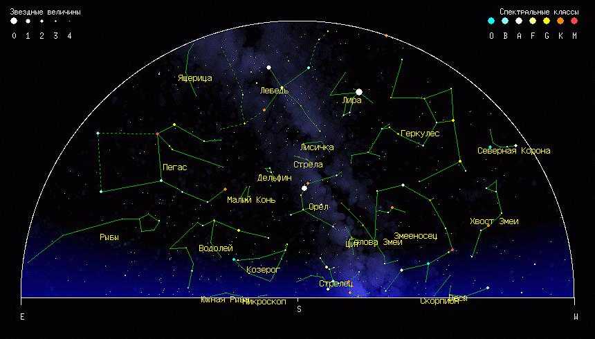 Августовское звездное небо демонстрирует летние созвездия во всей красе. Это время года – одно из наилучших для наблюдателя. Ночи становятся очень темными, однако не слишком холодными, да и ясных дней немало. В это время года даже невооруженным глазом прекрасно видно россыпи тысяч звезд, а Млечный Путь великолепен.