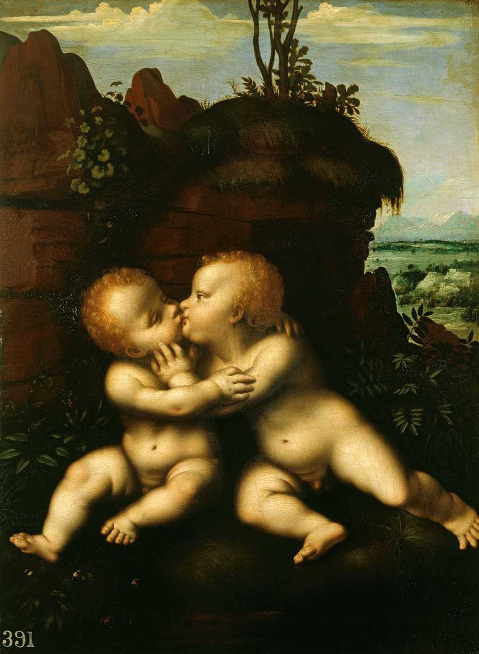 Датированная между 1513 и 1516 годами, эта картина, хранящаяся в Отделе живописи Лувра, предположительно была приобретена Людовиком XIV в 1662 году.