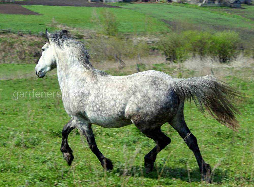 - Серая в яблоках — такой редкий окрас лошади получен путем искусственной селекции. Но по истечении времени все лошади данной масти из серого оттенка становятся белыми. Пятна по коде лошади разбросаны хаотично диаметром в 2-5 см. Молодые особи имеют больше пятен «яблок», со временем зрелые лошади становятся темнее окрасом, яблоки постепенно пропадают. Бытует легенда среди коневодов, что изображенные яблоки на теле лошади копируют ее кровеносные сосуды. Специалисты же утверждают, что специфичное питание позволит увеличить количество яблок по коде лошади, если она будет получать нужное количество минералов, витаминов и микроэлементов.