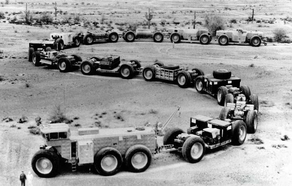 LeTourneau TС-497 Overland Train стал детищем холодной войны и предназначался для транспортировки грузов в случае выхода из строя американских железных и автомобильных дорог. В том случае, если бы Советский Союз нанес массированный ядерный удар по территории США. Вот тогда на передний план должен был бы выйти LeTourneau TС-497 Overland Train, способный доставлять до 400 тонн грузов в любую точку страны, невзирая на разрушенную дорожную сеть.