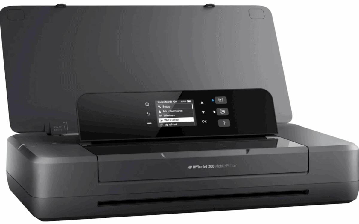Портативный принтер а4 для ноутбука от компании HP работает с iOS, Android по Wi-Fi подключению. Относится к офисному или домашнему оборудованию из-за большего веса (2,1 кг) по сравнению с конкурентами. Используется технология термической струйной печати с разрешением до 1200×4800 dpi.