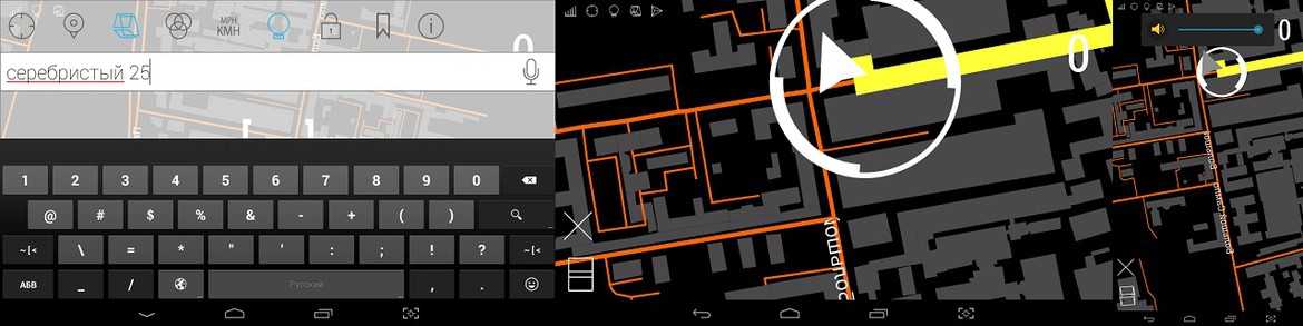 Странно реализован ввод адреса: программа в виде «подсказок» берет имена из записной книжки телефона и известные ей точки POI. Названий улиц же вообще не появляется, адрес надо вводить полностью вручную. Голосовой поиск не работает, при нажатии на «микрофон» никакой реакции. Впрочем, свой город (у нас Санкт-Петербург) программа определяет, и можно начинать прямо с названия улицы. Шрифты в программе очень мелкие, их плохо видно даже на планшете.