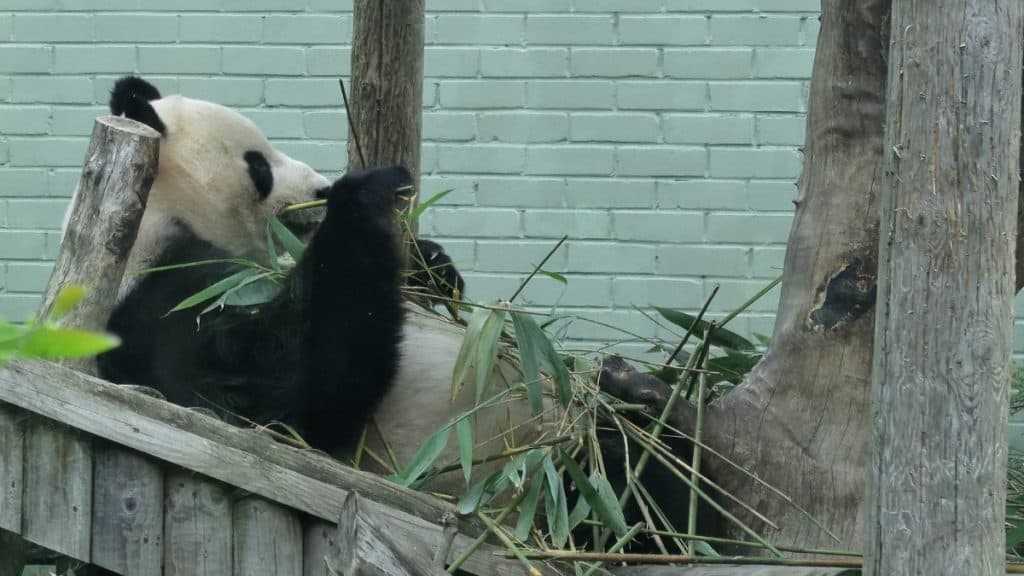 В зоопарке есть панды. Я застал их бодрствующими. Что не всегда возможно. Так как ленивые звери обычно спят большую часть дня. И просыпаются только для того, чтобы покушать.