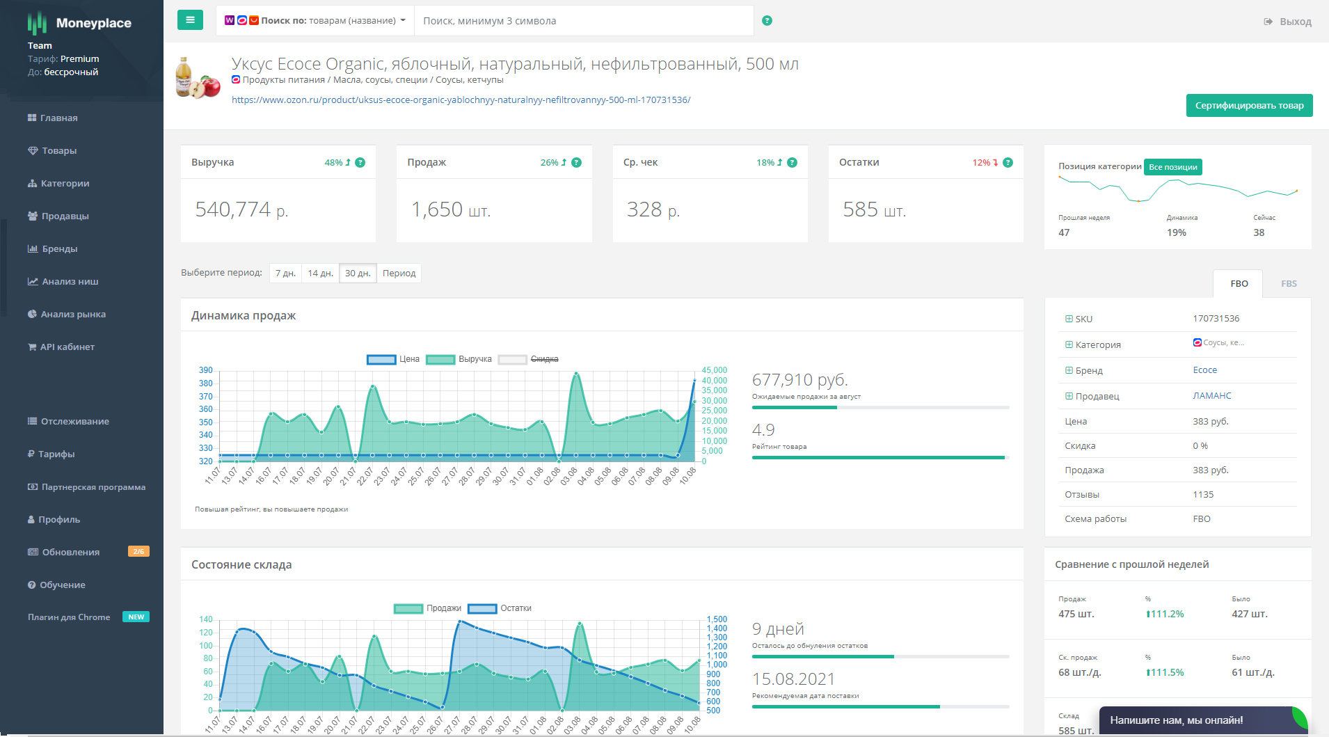 Натуральный яблочный уксус — 678 тысяч рублей выручки, средний чек 328 рублей