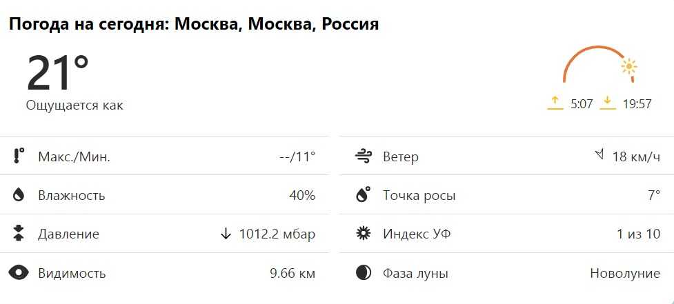 Помимо этого, большинство сайтов погоды также предоставляют сведения о следующих показателях: