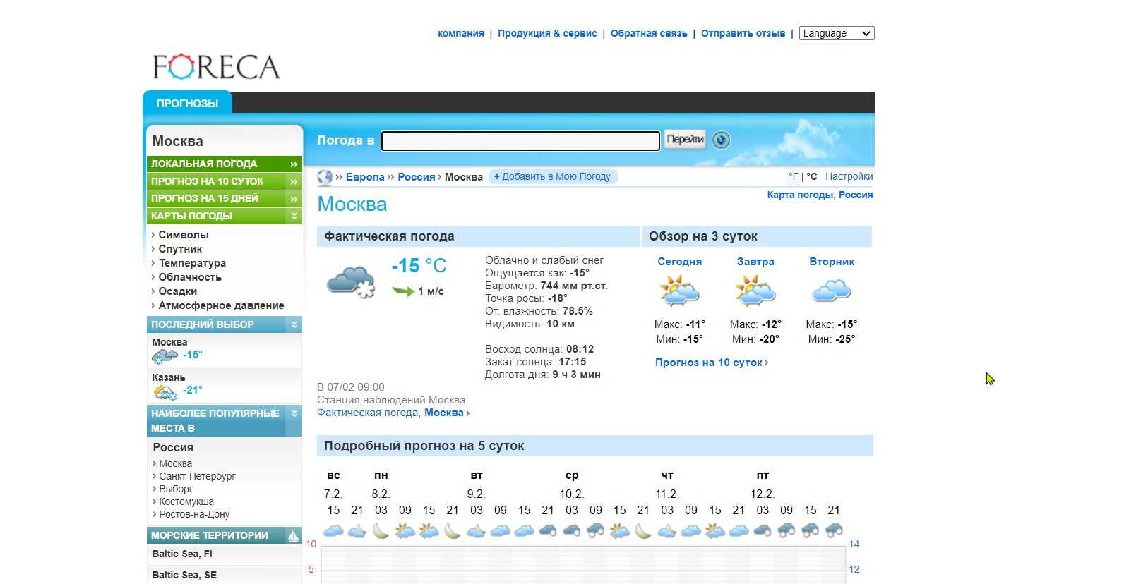 Второй источник, которому можно доверять — Foreca. Его сведениями пользуются международные медиа-гиганты Google, Microsoft, AOL.
