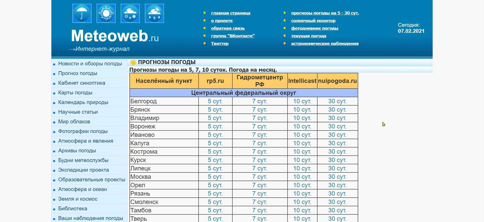 Основное достоинство любого метеосайта — правильность прогнозов. Она определяется тем, кто прогнозирует, и какими методами проводится мониторинг.