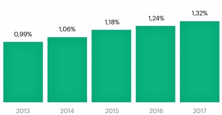 | 2018 | 95,4% | 51,7% | 43,7% | 4,6% (3,9%+0,7%) | 83% | 42,3% |